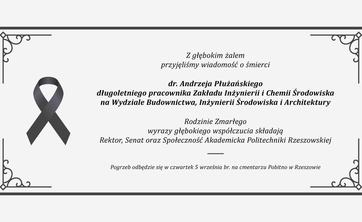 Rodzinie Zmarłego wyrazy najgłębszego i szczerego współczucia składają Rektor, Senat, Rada Uczelni oraz społeczność akademicka Politechniki Rzeszowskiej.