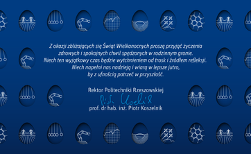 Najserdeczniejsze życzenia z okazji Świąt Wielkanocnych składa rektor Politechniki Rzeszowskiej prof. dr hab. inż. Piotr Koszelnik.