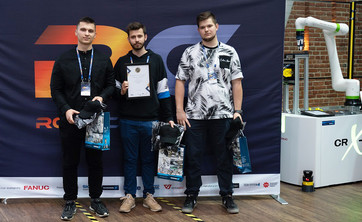 Uczestnicy musieli się wykazać znajomością m.in. z zakresu programowania robotów przemysłowych firmy FANUC i projektowania procesów transportowych realizowanych przez mobilne roboty AMR Versabot500.