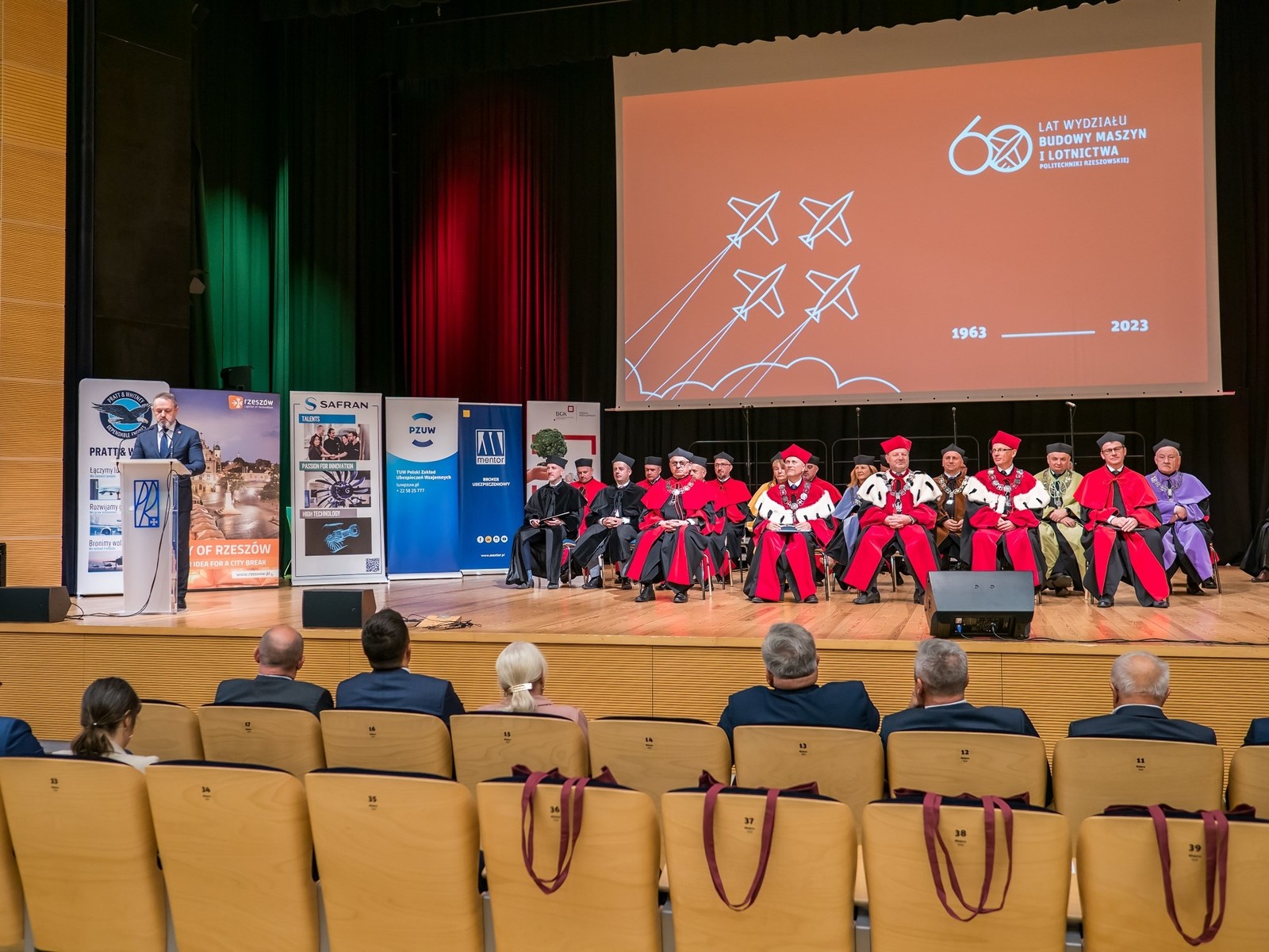 Dziekan prof. PRz A. Marciniec przedstawił historię Wydziału Budowy Maszyn i Lotnictwa, kolejne lata rozwoju, zasługi i sukcesy pracowników i studentów. Omówił strukturę wydziału, którą stanowi 10 katedr i 2 zakłady obejmujące typowe obszary dla dyscyplin inżynieria mechaniczna oraz inżynieria materiałowa. Największe z nich to: Katedra Inżynierii Lotniczej i Kosmicznej, Katedra Technologii Maszyn i Inżynierii Produkcji, Katedra Konstrukcji Maszyn. Podkreślił, że znakomita i nowoczesna baza naukowa, w tym wyjątkowe w skali Europy laboratoria, pozwalają prowadzić badania dla wielu gałęzi przemysłu. Zaprezentowano także film zrealizowany na podstawie archiwalnych materiałów TVP Oddział Rzeszów.