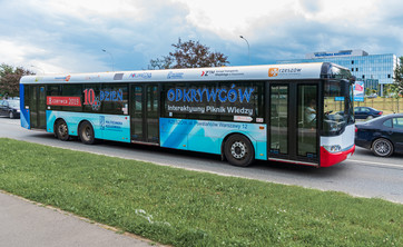 Autobus w barwach uczelni i 10. Dnia Odkrywców - Interaktywnego Pikniku Wiedzy jeździł dziś i będzie jeździł jutro (7 czerwca) po ulicach Rzeszowa. Będzie go też można zobaczyć w czasie pikniku.