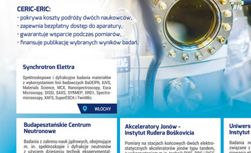 Konsorcjum Środkowoeuropejskiej Infrastruktury Badawczej CERIC-ERIC po raz kolejny zaprasza do bezpłatnego korzystania ze swojej infrastruktury badawczej.