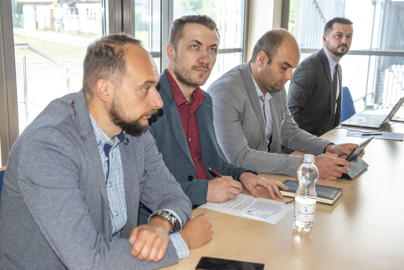 Od prawej: prof. A. Majka, prof. J. Sęp, dr Michał Wierciński, Sergiej Larkov,